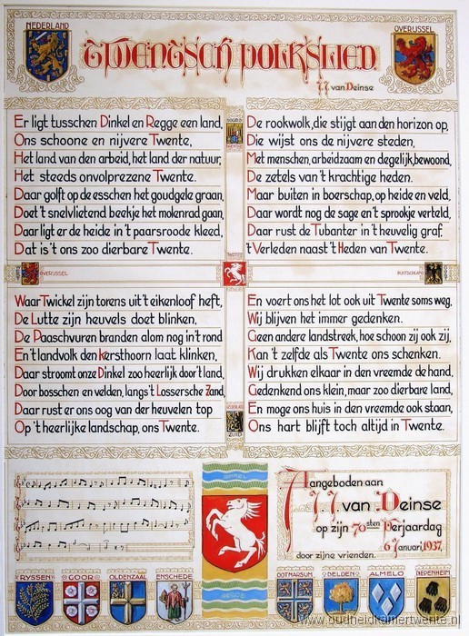 Het Twents volkslied is geschreven door J. J. van Deinse.